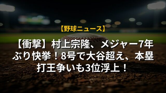 【速報】村上宗隆、MLB7号!54発ペースで速球打ち破り、スカウト戦略を揺るがす