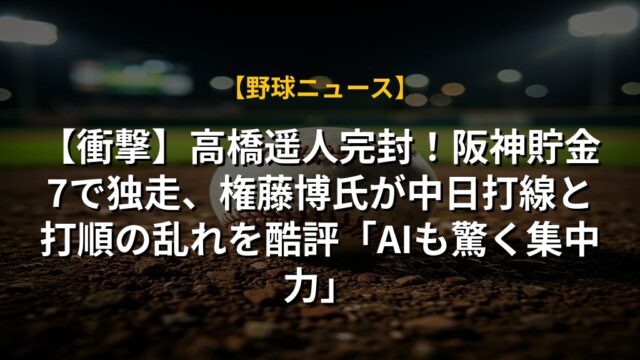 【衝撃】高橋遥人完封!阪神貯金7で独走、権藤博氏が中日打線と打順の乱れを酷評「AIも驚く集中力」