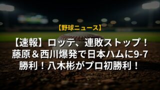 【速報】ロッテ、連敗ストップ!藤原&西川爆発で日本ハムに9-7勝利!八木彬がプロ初勝利!