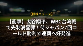 【衝撃】大谷翔平、WBC台湾戦で先制満塁弾!侍ジャパン7回コールド勝利で連覇へ好発進