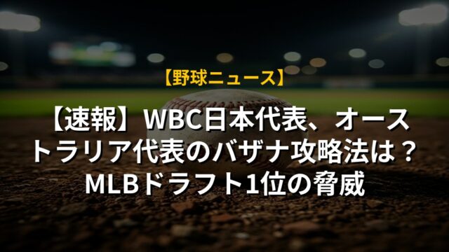 【速報】WBC日本代表、オーストラリア代表のバザナ攻略法は?MLBドラフト1位の脅威