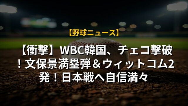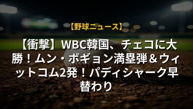 【衝撃】WBC韓国、チェコに大勝!ムン・ボギョン満塁弾&ウィットコム2発!パディシャーク早替わり