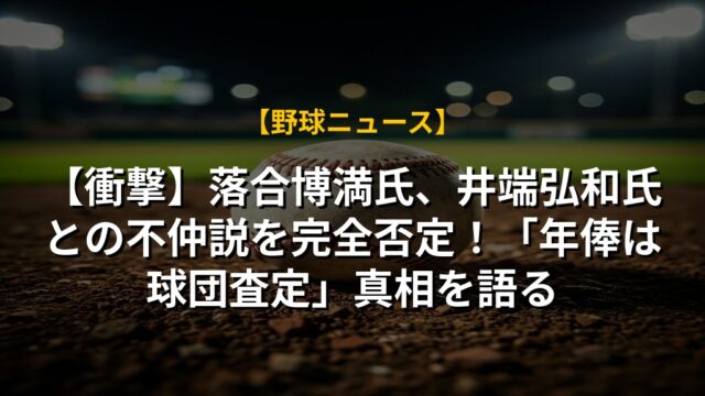 【衝撃】落合博満氏、井端弘和氏との不仲説を完全否定!「年俸は球団査定」真相を語る