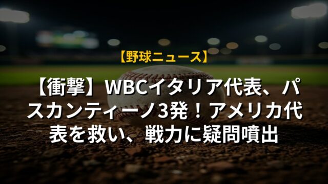【衝撃】WBCイタリア代表、パスカンティーノ3発!アメリカ代表を救い、戦力に疑問噴出