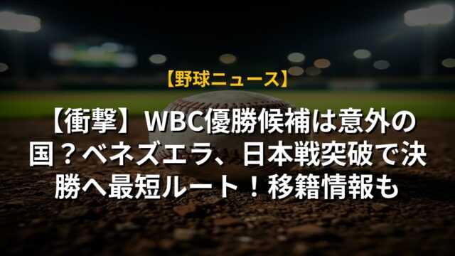 【衝撃】WBC優勝候補は意外の国?ベネズエラ、日本戦突破で決勝へ最短ルート!移籍情報も
