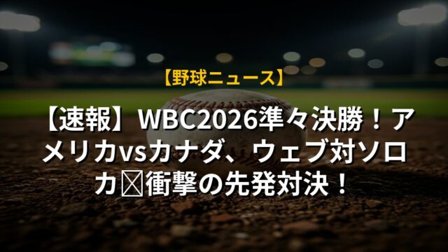【速報】WBC2026準々決勝!アメリカvsカナダ、ウェブ対ソロカ🔥衝撃の先発対決!