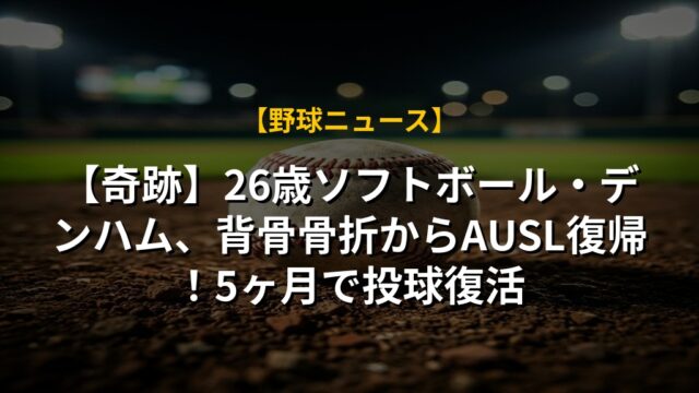 【奇跡】26歳ソフトボール・デンハム、背骨骨折からAUSL復帰!5ヶ月で投球復活