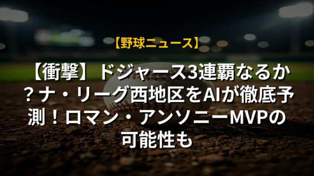 【衝撃】ドジャース3連覇なるか?ナ・リーグ西地区をAIが徹底予測!ロマン・アンソニーMVPの可能性も