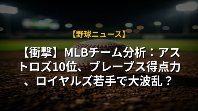 【衝撃】MLBチーム分析:アストロズ10位、ブレーブス得点力、ロイヤルズ若手で大波乱?
