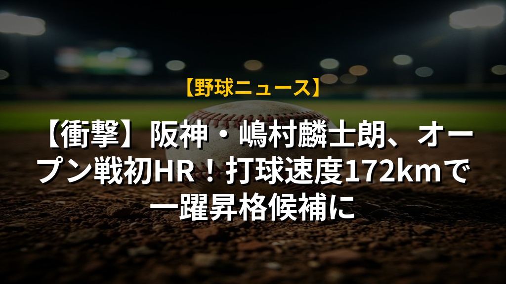 【衝撃】阪神・嶋村麟士朗、オープン戦初HR!打球速度172kmで一躍昇格候補に