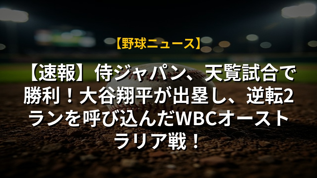 侍ジャパン対オーストラリア戦は、大会連覇へ向けた重要な一戦であり、大谷翔平選手の活躍が注目された。