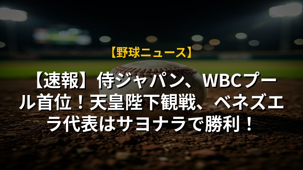 【速報】侍ジャパン、WBCプール首位!天皇陛下観戦、ベネズエラ代表はサヨナラで勝利!