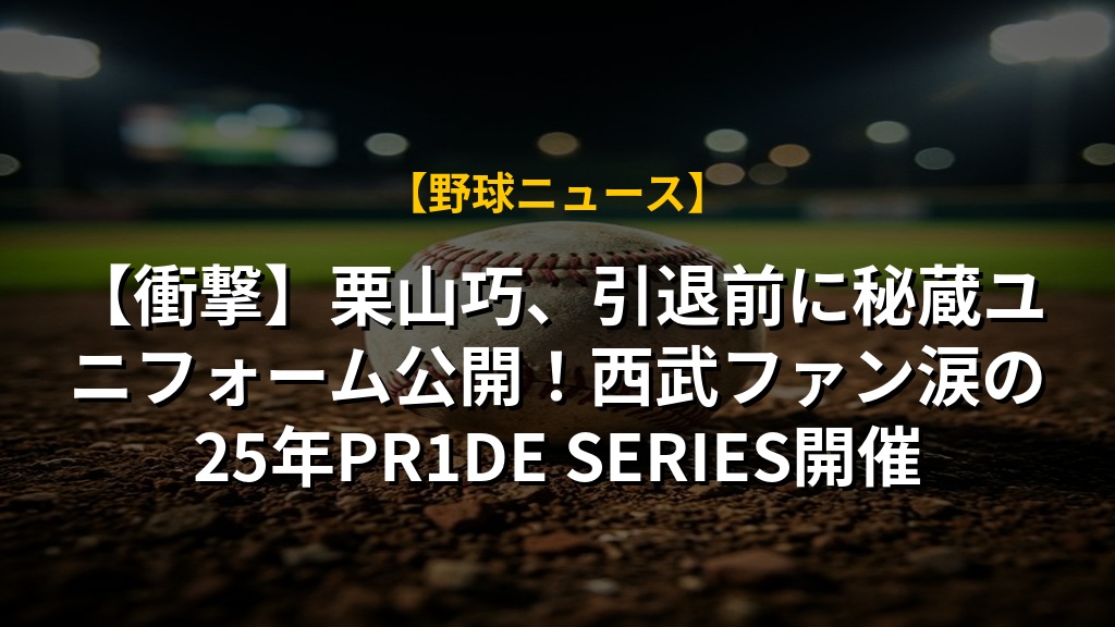 西武ライオンズは、栗山巧選手の引退シーズンを記念する『PR1DE SERIES』の一環として、過去のユニフォーム展示や特別号の配布、ファン投票企画を実施する。