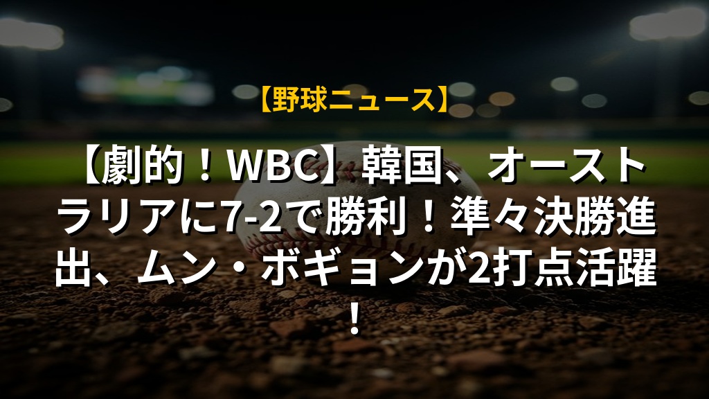 - 韓国がオーストラリアに7-2で勝利し、WBCの準々決勝進出を決めた。