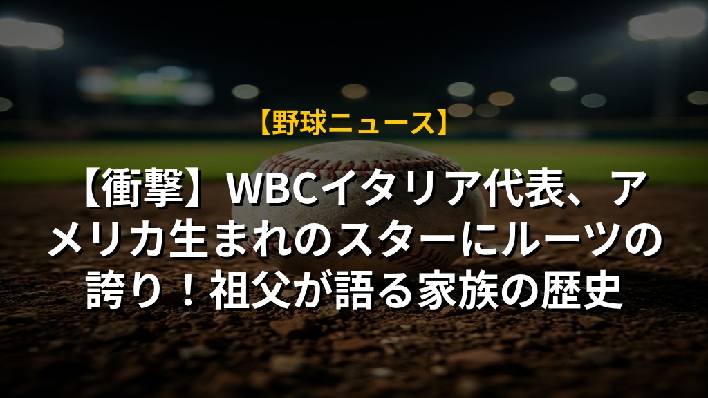 【衝撃】WBCイタリア代表、アメリカ生まれのスターにルーツの誇り!祖父が語る家族の歴史