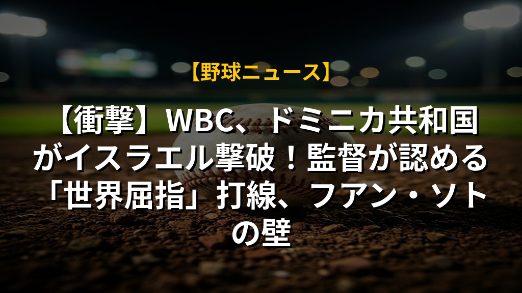 【衝撃】WBC、ドミニカ共和国がイスラエル撃破!監督が認める「世界屈指」打線、フアン・ソトの壁