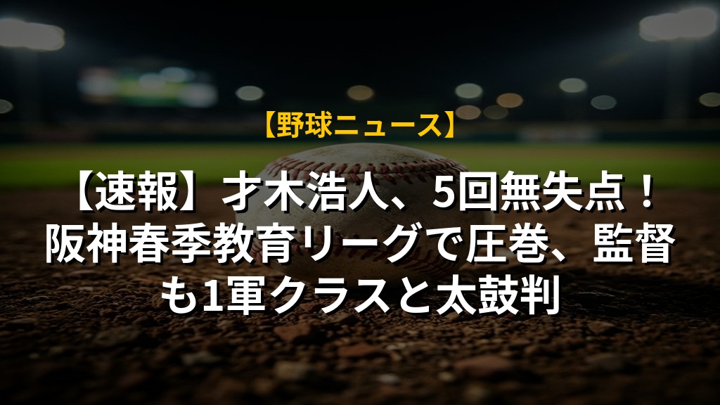 - 才木浩人投手が5回無失点の圧巻投球。平田監督も1軍クラスと評価し、調整の成果を強調。