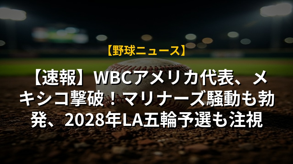【速報】WBCアメリカ代表、メキシコ撃破!マリナーズ騒動も勃発、2028年LA五輪予選も注視