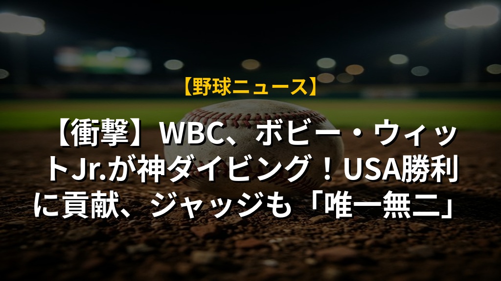 ワールド・ベースボール・クラシック(WBC)において、チームUSAのボビー・ウィット・ジュニア選手が、メキシコ戦で驚異的な守備力を発揮し、チームの勝利に大きく貢献した。