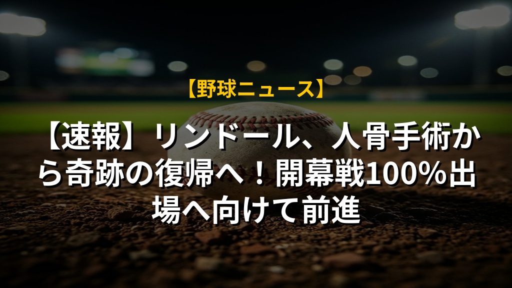 開幕戦での出場が実現した場合、打撃フォームの再構築とパワーの回復が、リンドール選手のシーズン全体のパフォーマンスを左右する鍵となる。