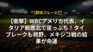 - WBC1次ラウンドB組で、米国がイタリアに6-8で敗北し、敗退の可能性が出てきた。