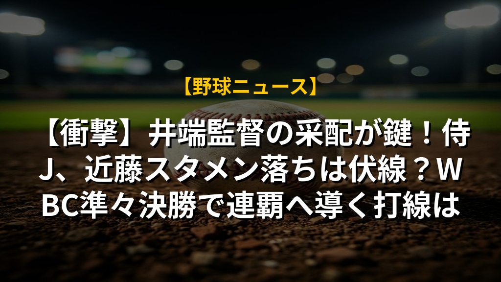 【衝撃】井端監督の采配が鍵!侍J、近藤スタメン落ちは伏線?WBC準々決勝で連覇へ導く打線は