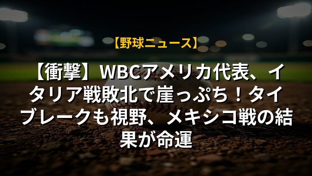 【衝撃】WBCアメリカ代表、イタリア戦敗北で崖っぷち!タイブレークも視野、メキシコ戦の結果が命運