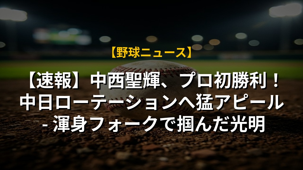 【速報】中西聖輝、プロ初勝利!中日ローテーションへ猛アピール – 渾身フォークで掴んだ光明