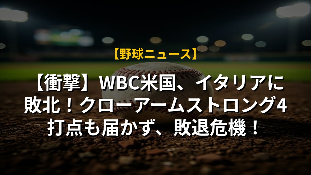 - 米国代表はイタリア代表に6-8で敗北し、WBC初黒星。大量失点と拙守が重なり、苦戦を強いられた。