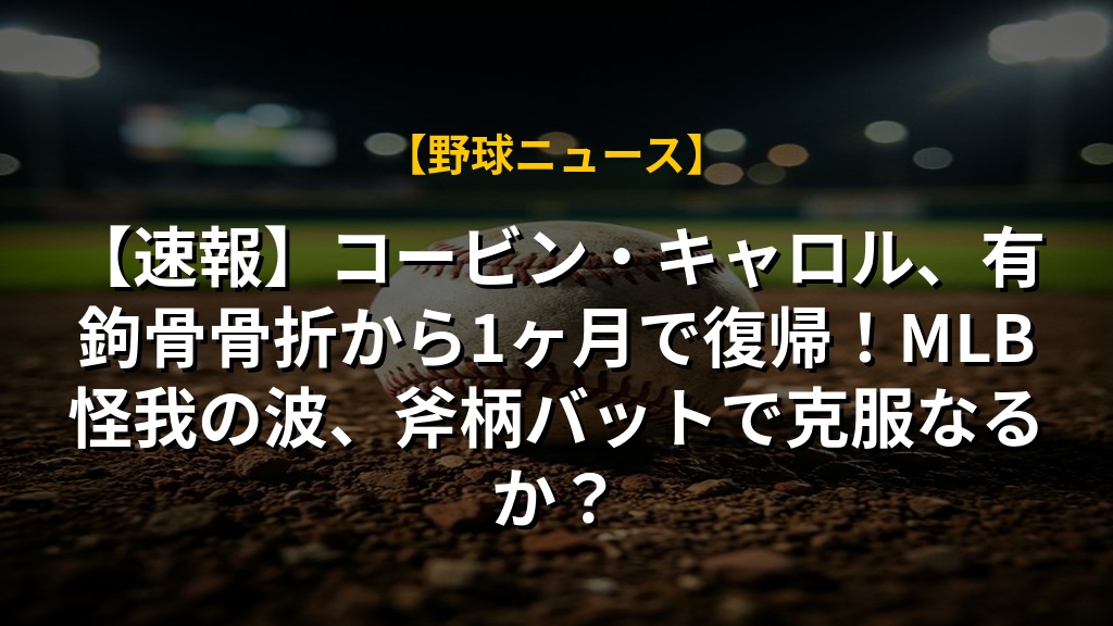 【速報】コービン・キャロル、有鉤骨骨折から1ヶ月で復帰!MLB怪我の波、斧柄バットで克服なるか?