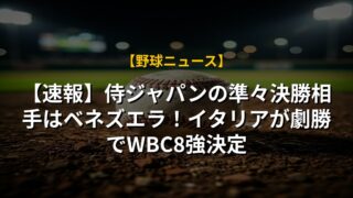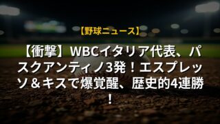 ワールド・ベースボール・クラシック(WBC)のイタリア対アメリカ戦での怪我であり、国際大会中の選手のコンディション管理の難しさを示唆している。