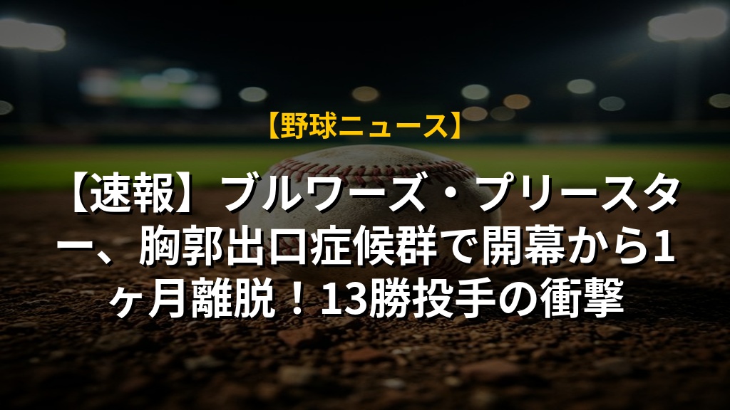 【速報】ブルワーズ・プリースター、胸郭出口症候群で開幕から1ヶ月離脱!13勝投手の衝撃