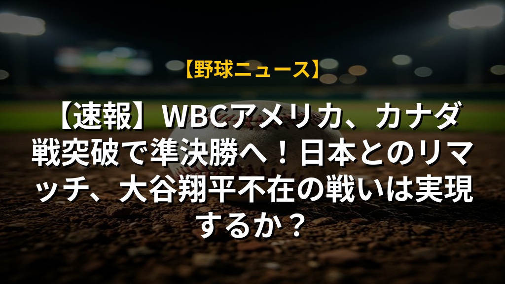 【速報】WBCアメリカ、カナダ戦突破で準決勝へ!日本とのリマッチ、大谷翔平不在の戦いは実現するか?