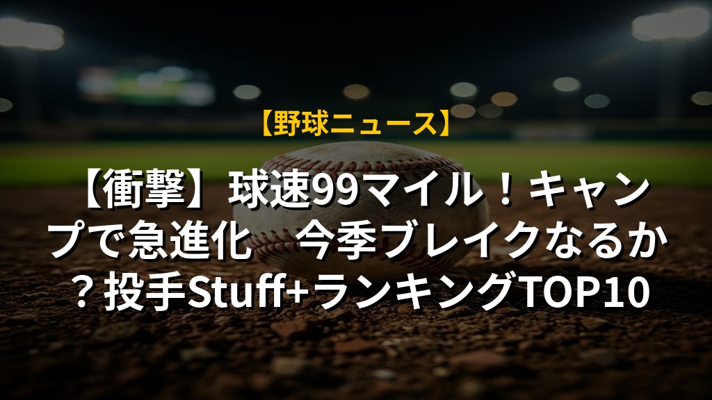 【衝撃】球速99マイル!キャンプで急進化 今季ブレイクなるか?投手Stuff+ランキングTOP10