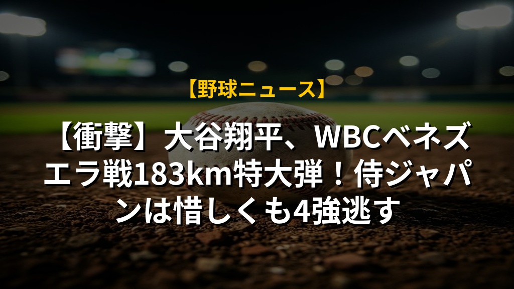 【衝撃】大谷翔平、WBCベネズエラ戦183km特大弾!侍ジャパンは惜しくも4強逃す