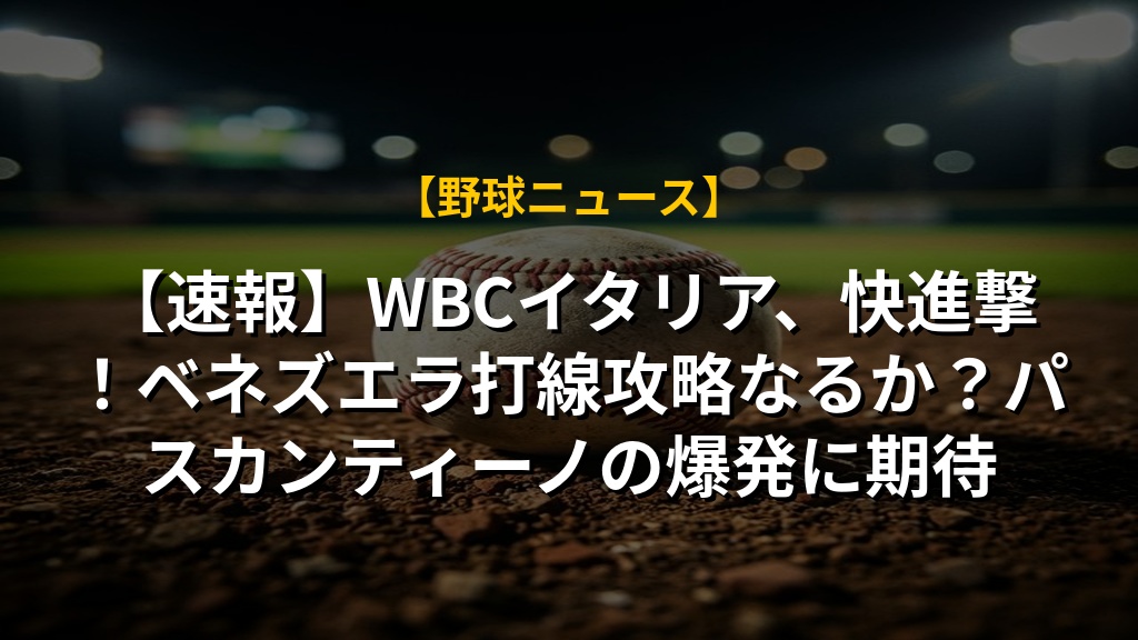 【速報】WBCイタリア、快進撃!ベネズエラ打線攻略なるか?パスカンティーノの爆発に期待