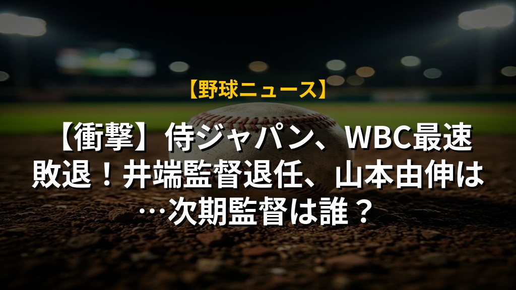 【衝撃】侍ジャパン、WBC最速敗退!井端監督退任、山本由伸は…次期監督は誰?