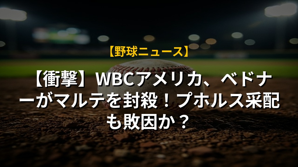 【衝撃】WBCアメリカ、ベドナーがマルテを封殺!プホルス采配も敗因か?