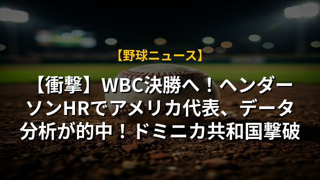 【衝撃】WBC決勝へ!ヘンダーソンHRでアメリカ代表、データ分析が的中!ドミニカ共和国撃破