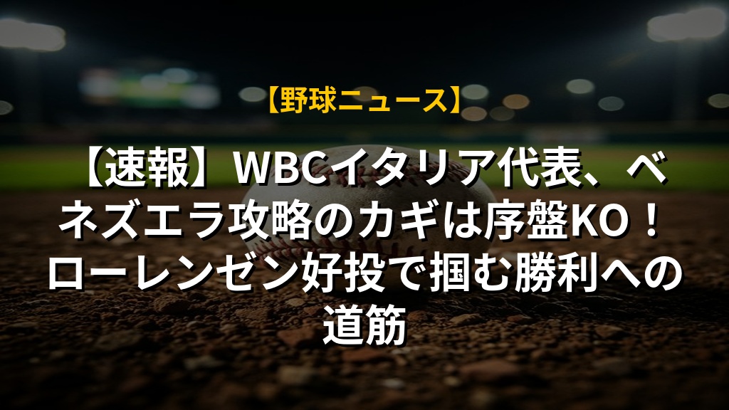 【速報】WBCイタリア代表、ベネズエラ攻略のカギは序盤KO!ローレンゼン好投で掴む勝利への道筋