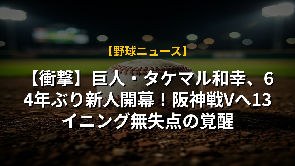 【衝撃】巨人・タケマル和幸、64年ぶり新人開幕!阪神戦Vへ13イニング無失点の覚醒