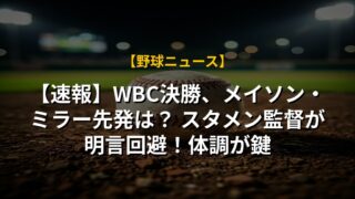 - セイヤ・スズキはWBCでの怪我を受け、右膝のMRI検査を実施。深刻度を判断する。