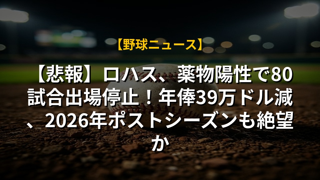 【悲報】ロハス、薬物陽性で80試合出場停止!年俸39万ドル減、2026年ポストシーズンも絶望か