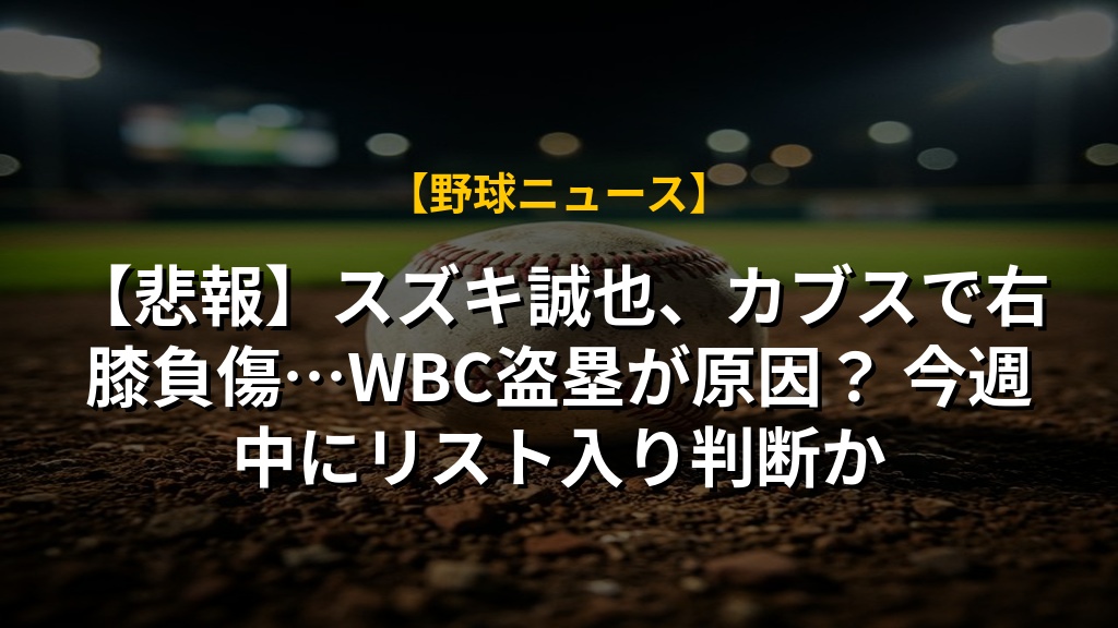 【悲報】スズキ誠也、カブスで右膝負傷…WBC盗塁が原因? 今週中にリスト入り判断か