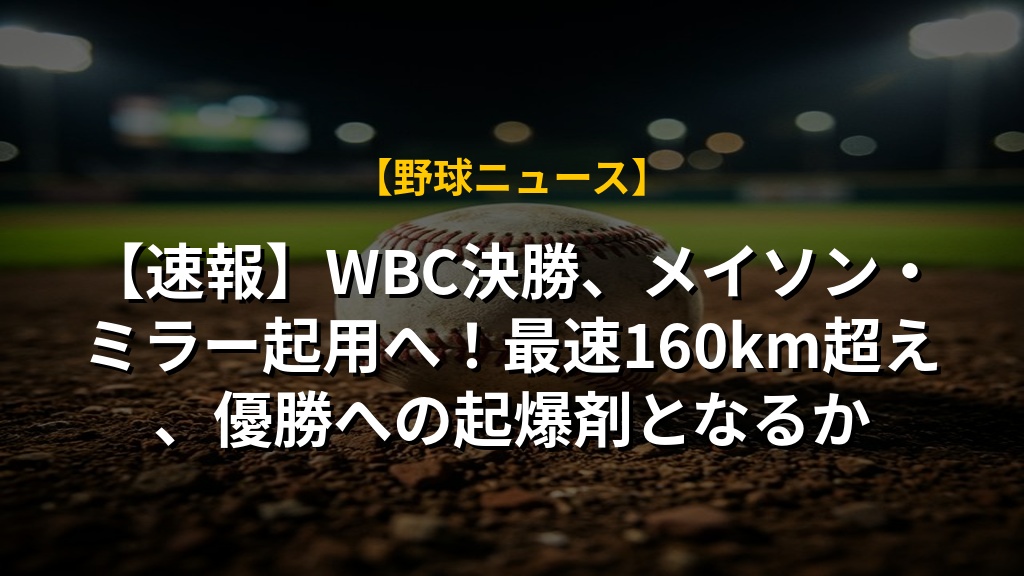 【速報】WBC決勝、メイソン・ミラー起用へ!最速160km超え、優勝への起爆剤となるか