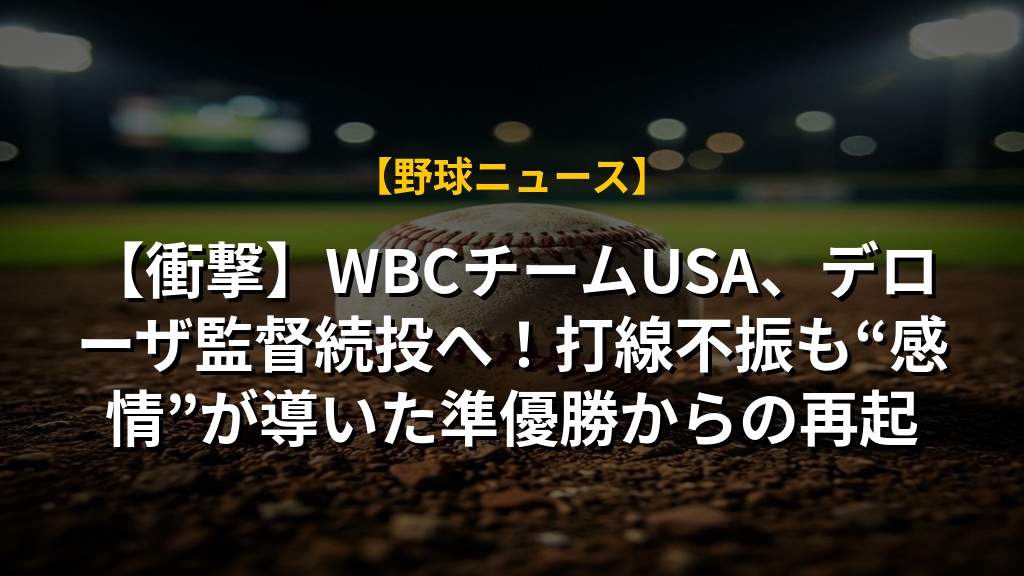 【衝撃】WBCチームUSA、デローザ監督続投へ!打線不振も“感情”が導いた準優勝からの再起