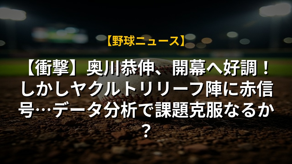 【衝撃】奥川恭伸、開幕へ好調!しかしヤクルトリリーフ陣に赤信号…データ分析で課題克服なるか?