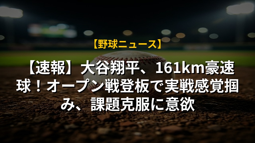 【速報】大谷翔平、161km豪速球!オープン戦登板で実戦感覚掴み、課題克服に意欲