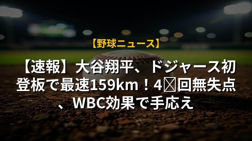 【速報】大谷翔平、ドジャース初登板で最速159km!4⅓回無失点、WBC効果で手応え