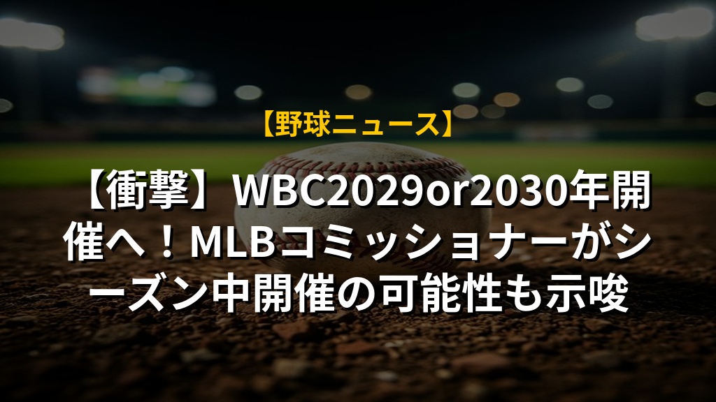 【衝撃】WBC2029or2030年開催へ!MLBコミッショナーがシーズン中開催の可能性も示唆